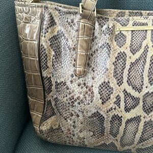 Brahmin Medium Asher Satchel Natural Leighton Handbag Purse Snakeskin Taupe