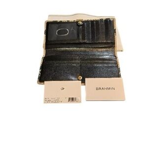This stylish tote bag features a striking snake print design in black and tan. Perfect for adding a touch of sophistication to any outfit. NWT Brahmin, a cool toned neutral with dimension. This wear-with-everything hue has the perfect depth of color for all your fall outfits. The cool shades draw inspiration from all things natural while the light greyback finish brings in just a hint of shine. Made with genuine leather.