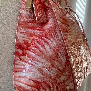 Brahmin Melbourne Small Pink Flamingo Caroline Crocodile-Embossed Satchel Bag