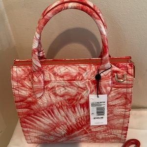 From the Melbourne Collection by BRAHMIN, the Small Pink Flamingo Caroline Crocodile-Embossed Leather Satchel Bag features: