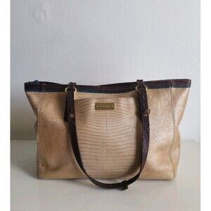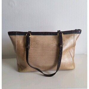Brahmin Mini Arno Shimmer Tri-texture Geniune Leather Beige Brown Shoulder Bag