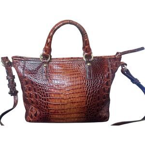 Brahmin Mini Asher Pecan Melbourne Croc Leather Satchel Shoulder/Crossbody Bag
