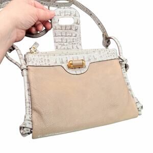 Brahmin Mojito Melbourne Croc Embossed Leather Crossbody Bag Beige and cream