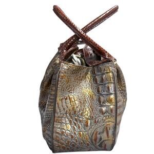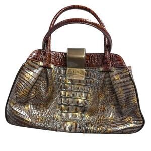 Brahmin Pecan Crocodile Embossed Leather Dual Handle Shoulder Bag Dr Satchel Vtg
