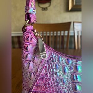 Authentic Iridescent pink/ lilac/ deep purple crocodile embossed Brahmin. This bag is a show piece. Comes with dust bag and card. NWT Plastic still on hardware