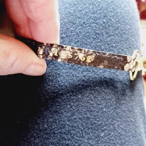 The color combination taupe to dark brown patent snake has dimensional texture. and a rich two tone smooth leather strap.