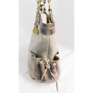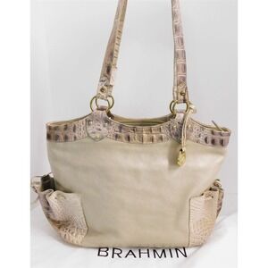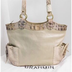 Brahmin Reagan Byzantine Beige Gold Croc Embossed Leather Shoulder Bag