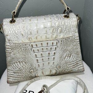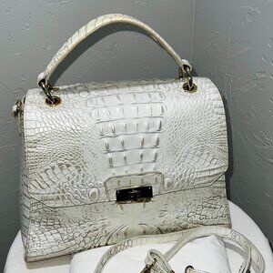 Large Brahmin satchel, Cloud Melbourne, suede lining. White with gray/silver glaze. Good condition, comes with shoulder strap and dustbag. 9.5" tall X 12.75" wide X 5.5" deep. Non-smoking home.