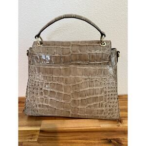 Brahmin Satchel Snake Skin Pattern Leather Bag Purse Gray Tan
