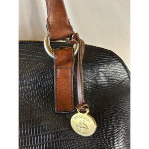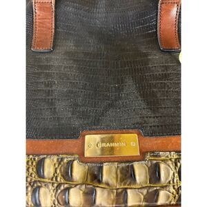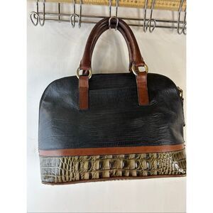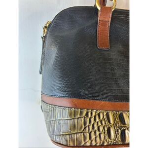 Brahmin Satchel with handles Black Brown Zipper Embossed Leather Croc Satchel Zi
