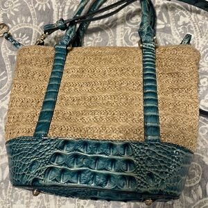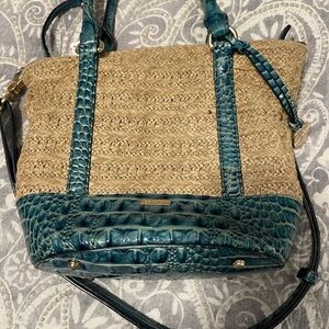 Brahmin Small Bowie Raffia/lagoon blue Satchel Crossbody summer
