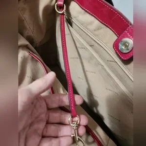 Authentic Brahmin - A Rare Fined! Elegant Smooth Leather Luxury Bag in Dark Pink (Raspberry) This large bag is perfect for everyday use. Features a Spacious interior with room for all your personal items. The exterior offers - one zippered pocket with 2 additional slip in pockets and an attached key ring holder. The exterior bag offers a back large slip in pocket for your phone. The long sturdy handles for comfortable shoulder carrying.