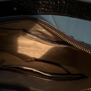 Gently used - looks like new - black adjustible 13" shoulder strap bag with zipper enclosure, exterior side zip pocket, interior organizer pocket, interior zip pocket, pen loop and key clip.