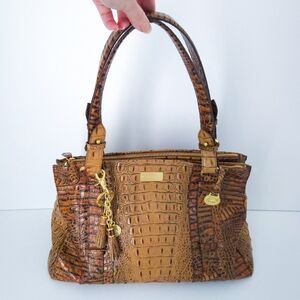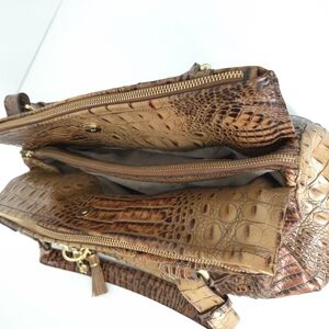 Brahmin Tan Brown Alligator Shelby Divided Satchel Shoulder Handbag with COA
