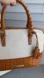 Chic satchel with textured cream body. Tan leather accents and tassels. Perfect for stylish outings. Is missing the crossbody strap. This bag is in EUC