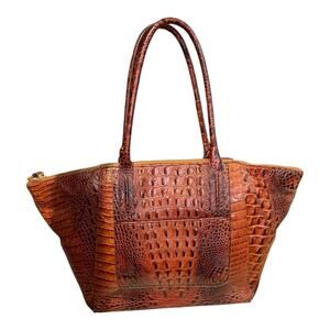 Brahmin Taylor Large Tote Pecan Melbourne Brown Croc Embossed Leather Bag