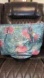Elegant tote with tropical leaf and floral design. Features vibrant blue and pink hues. Ideal for stylish outings.