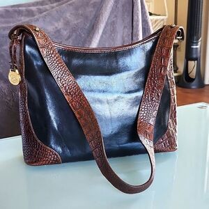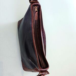 This vintage bag is a classic Brahmin, croc embossed leather bag. The exterior is in beautiful vintage condition, and the interior has no damage, but it needs a cleaning. C1.251