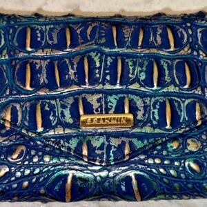 Featured in Dragon Melbourne, a striking print that transitions from rich indigo to deep blue-green hues finished with color-shifting metallic tipping. Genuine croc-embossed leather.