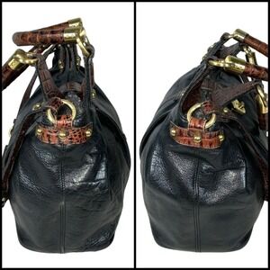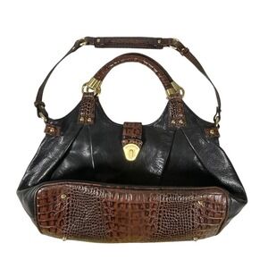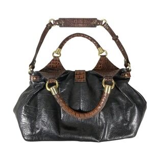 Brahmin Vintage Dagny Satchel Black Croc Embossed Leather Shoulder Bag