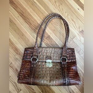 Brahmin Vintage Montfleur Satchel Handbag in Brown Croc Embossed Leather