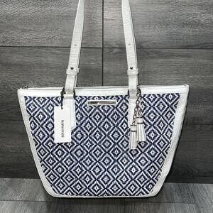Brahmin Willa Carryall Denim Summer palm White Shoulder Bag B000503