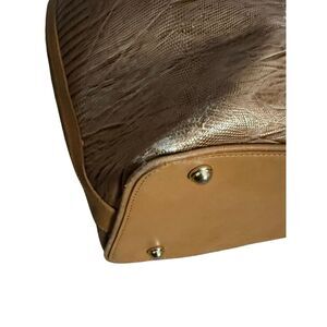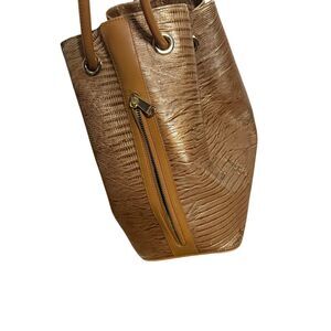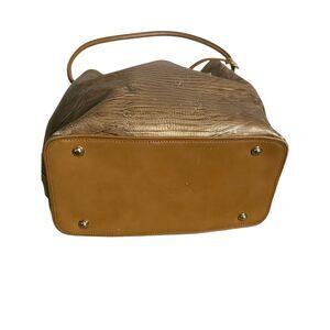 Brahmin Women's Embossed Croc Leather Drawstring Trina Bucket Shoulder Bag Brown OS