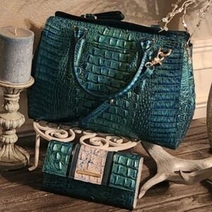Gorgeous brahmin bag with wallet NWOT comes with care card. gold hardware no call outs.