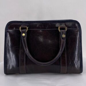 Dark brown/black mini tote bag, gold hardware, zip top, 2 handles