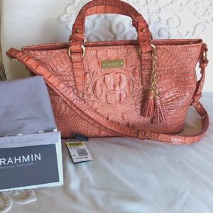 Genuine Brahmin Mini Asher Tulle Gorgeous coral embossed leather gator/croc design with stunning tassel-brass detailing