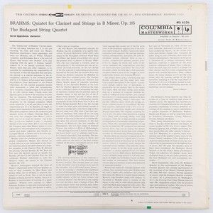 Brahms David Oppenheim Clarinet Quintet In B-Minor Budapest String 12" LP Record