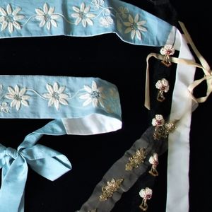 Hand embroidered over tulle fabric that you can braid along with hair.