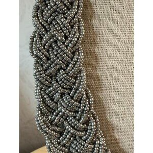 Braided Beaded Necklace In Silver Tone With Adjustable Chain Closure