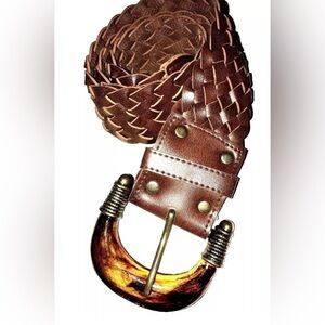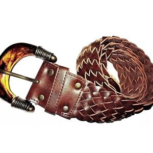 Braided Belt with Resin 1980's Belt Buckle, Rare Buckle, Wide Adjustable S-M
