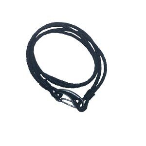 This sleek braided leather bracelet with a secure steel claw clasp offers a durable and sophisticated touch, ideal for daily wear or professional settings.