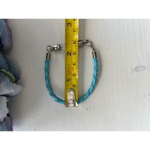 Keywords: braided bracelet, faux leather, turquoise bracelet, name bracelet, Jenna bracelet, glass charm, silver tone, lobster clasp, fashion bracelet, accessory, gift idea