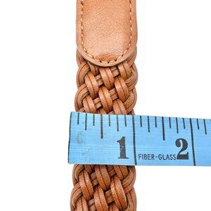 This finely woven braided leather belt tells a story of timeless craftsmanship and versatility. Its brass buckle adds an antique charm, making it a cherished wardrobe staple for casual and formal outfits alike. Designed for women, this belt promises durability and enduring style.