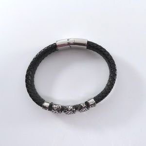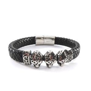 Braided Leather Bracelet, Cheetah Heads, Unisex