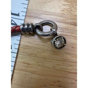 Braided Leather Bracelet With Sterling Silver Toggle Clasp & Crystal Charm