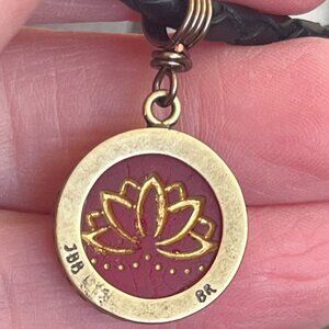 Braided Leather Necklace, Red Lotus Pendant, Women's Men's Layering Necklace