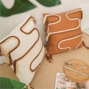 🌸This modern pillow cover in neutral cream & orange tones with thick embellishments running throughout.