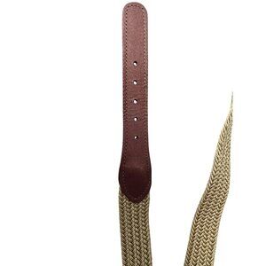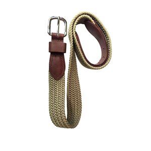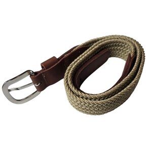 Braided Tan Woven Belt With Brown Leather Accents & Silver Buckle Made In USA Si