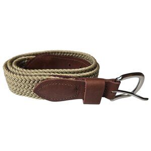 Versatile and durable, this braided belt features genuine leather accents and a polished buckle. Ideal for casual or semi-formal outfits.