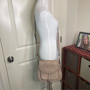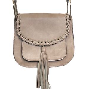 Braided Tassel Taupe Crossbody Saddle Bag in Excellent condition