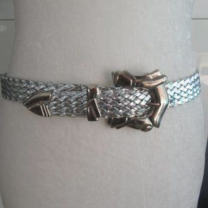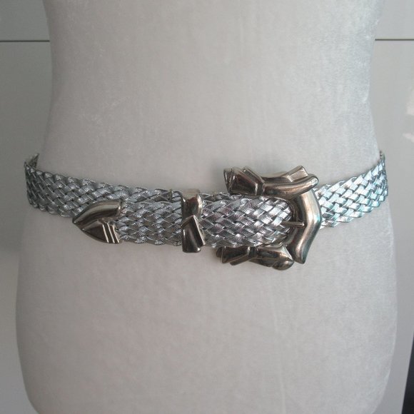 Braided Woven Leather Belt Silver Tone Hardware in Silver Color Size Small