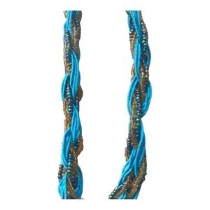 Braided vintage retro style turquoise gold and rainbow strands necklace 19 in