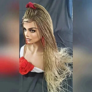 Our handmade braided full lace wig is a beautifully crafted masterpiece that truly stands out in the market. Each strand is meticulously hand-braided by seasoned artisans, ensuring a natural look that simulates real hair.
