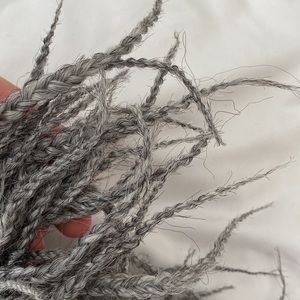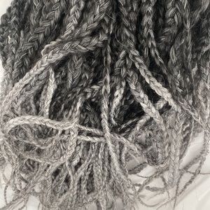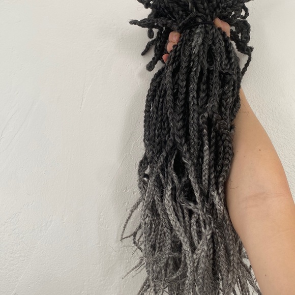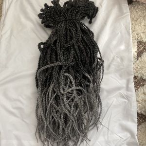 These ombré black and white/gray braids are perfect for beginners! 18 inches! About 140 Roots! Only been used once for 1 day!