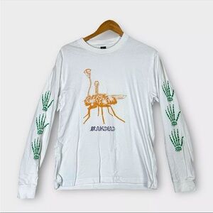 Brain Dead L/S T Shirt Worm in the Apple Double Sided Skate Mens Small White