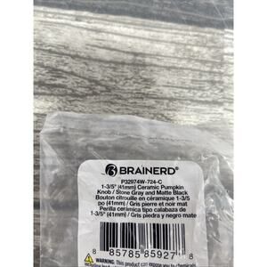 The Brainerd 1 1/2" Stone Gray Ceramic & Black Pumpkin Cabinet Knob Lot Of 7 is a set of stylish and unique cabinet knobs made of metal and ceramic materials. These knobs feature a stone gray and black color scheme, giving your cabinets a modern and eye-catching look. With a height of 12 inches, these knobs are designed to be easily installed and add a touch of sophistication to your kitchen decor. Perfect for adding a personalized touch to your cabinets, these pumpkin cabinet knobs are sure to enhance the overall aesthetic of your kitchen space. One package was opened for pictures but all knobs and screws are still included. E